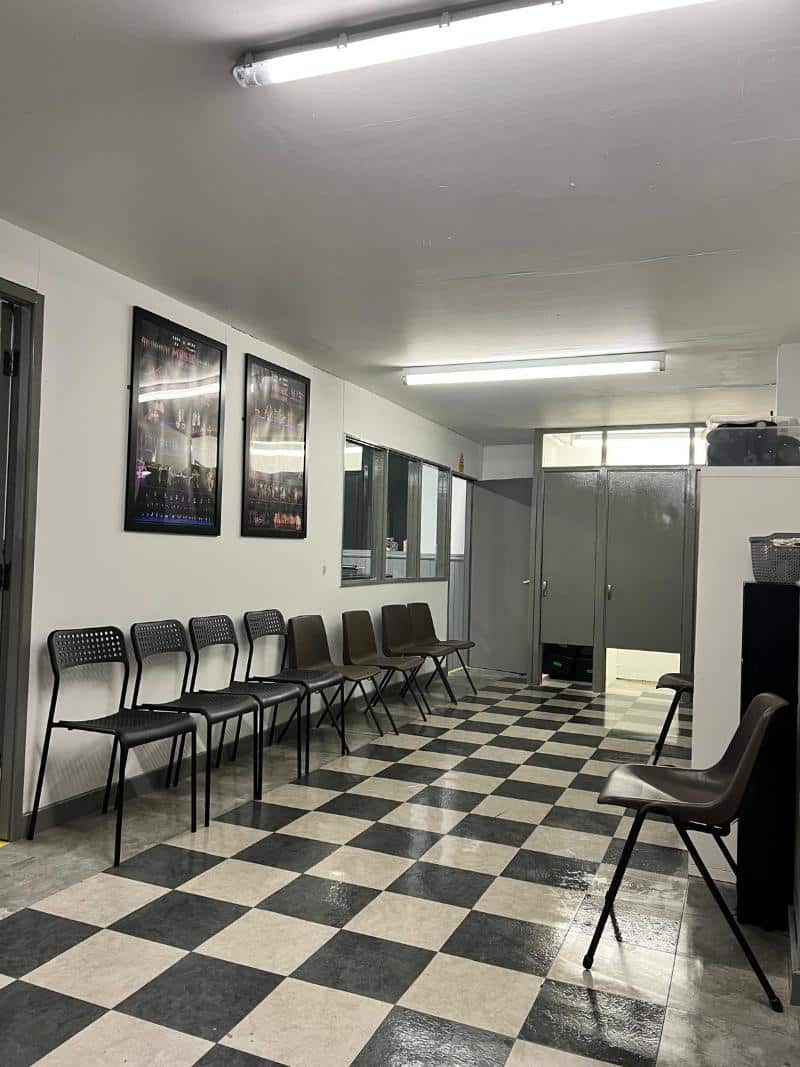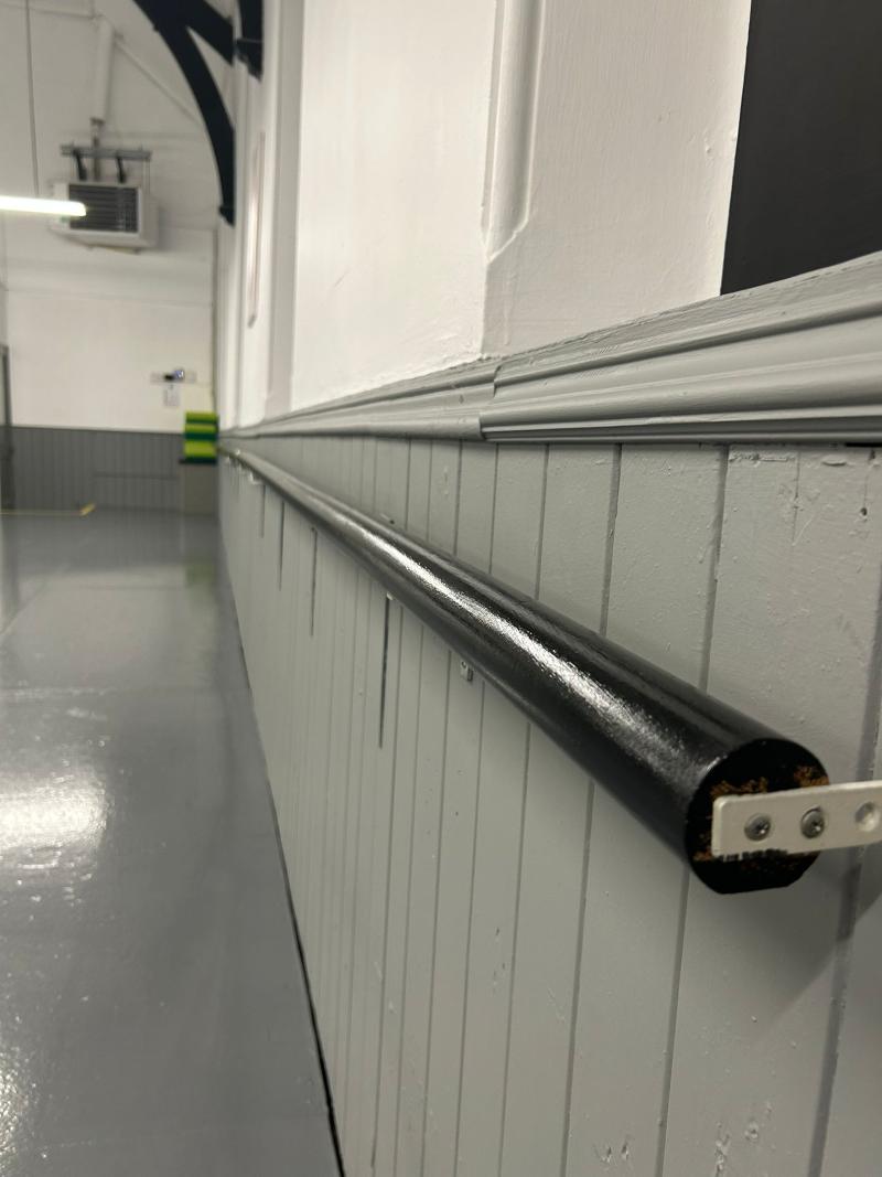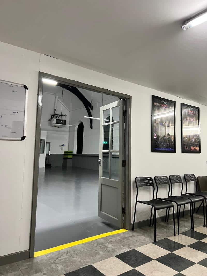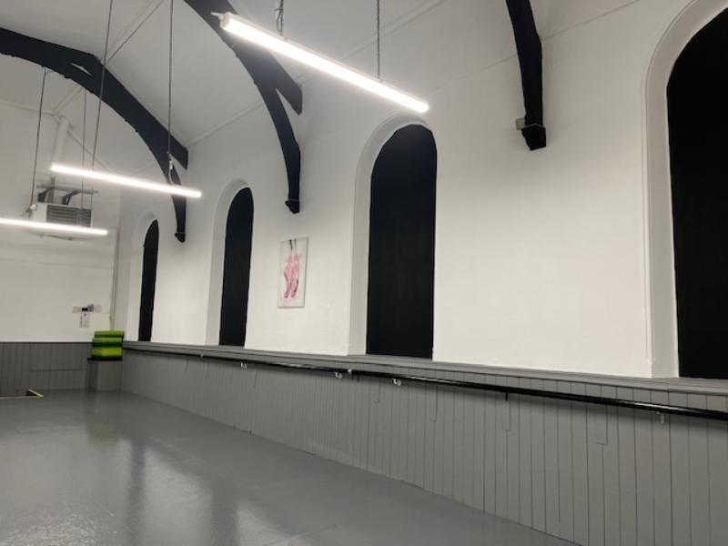 There's a separate waiting area with changing facilities and a wide, well lit floor space with mirrors and a ballet barre.